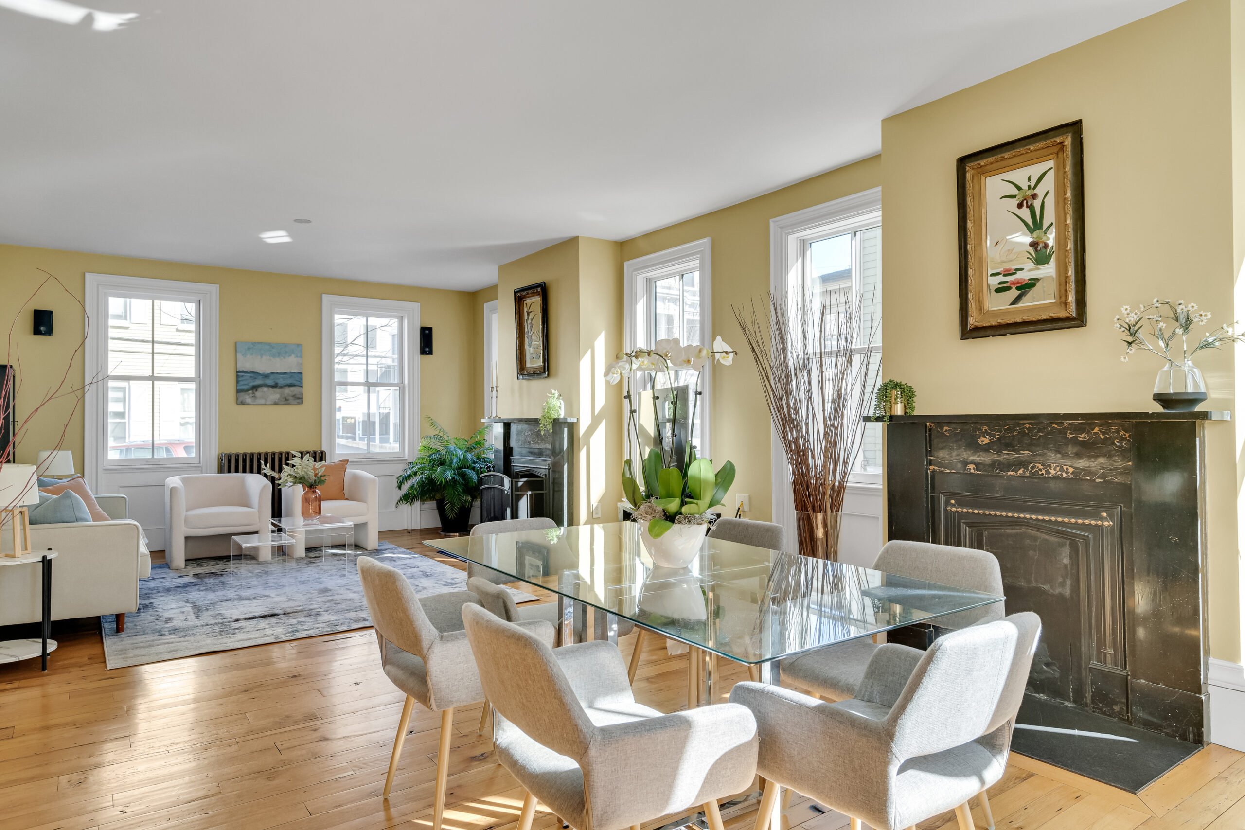 Beautiful gut renovated 1844 Greek Revival on historic Thorndike Street, with an extensive gated backyard. Located just 1 1/2 blocks from Bullfinch Square, there is easy access to Boston, Lechmere and Kendall Square T stations, EZ Ride, abundant amenities. Period mouldings were replaced, including the staircase, with replicas faithful to the era of the house. The wall between the living and dining rooms was removed to create one great room. Two handsome, original marble mantels remain, with a working fireplace in the living room and a decorative fireplace in the dining area. A stunning, contemporary addition is at the rear of the house with a casual ambience in sync with today’s lifestyle. The big open kitchen is wondrous and has radiant heat under the Argento tile floor. There is a coat closet and discreet half bath. Upper floors house the primary suite, 4 bedrooms, 3 bathrooms, 2 offices, 2 balconies. 4 Nest + ecobee heat and 3 Nest + ecobee CA zones. Full basement with bullkhead. Garage + 4 parking spaces.