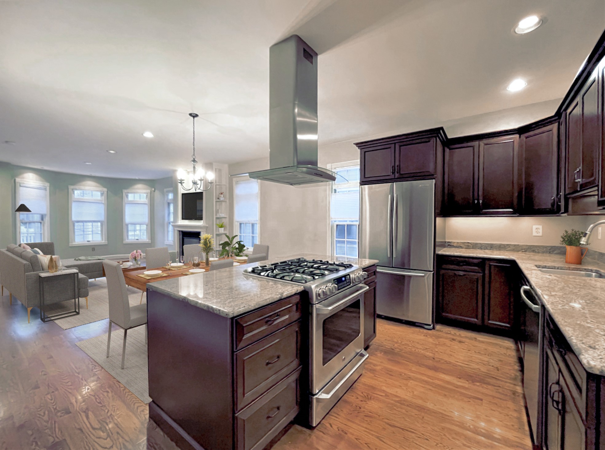 Dynamite location between Central and Inman Squares, with easy access east to Kendall Sq, MIT and Boston; west to Harvard Sq; south to the Charles River & Mass. Pike. Attractive duplex with an expansive open floor plan. The living/dining room has abundant windows for good natural light; handsome gas fireplace and access to the front balcony. The open kitchen has an island with gas cooktop, granite counters, SS appliances, vented hood. The 1/2 bath is discreetly placed. This duplex has a very unusual and versatile floor plan, designed so that the primary bedroom could be on the second/main living floor or on the first floor with the connecting office because each bedroom has a full en suite bathroom. What a choice! Both en suite marble bathrooms are lovely. Each bedroom has direct access to a private deck. Parking is behind the building, deeded and tandem. Well-maintained building; each owner is a trustee–a vigilant board. Near Central Square T/amenities/a nearby park on Broadway.