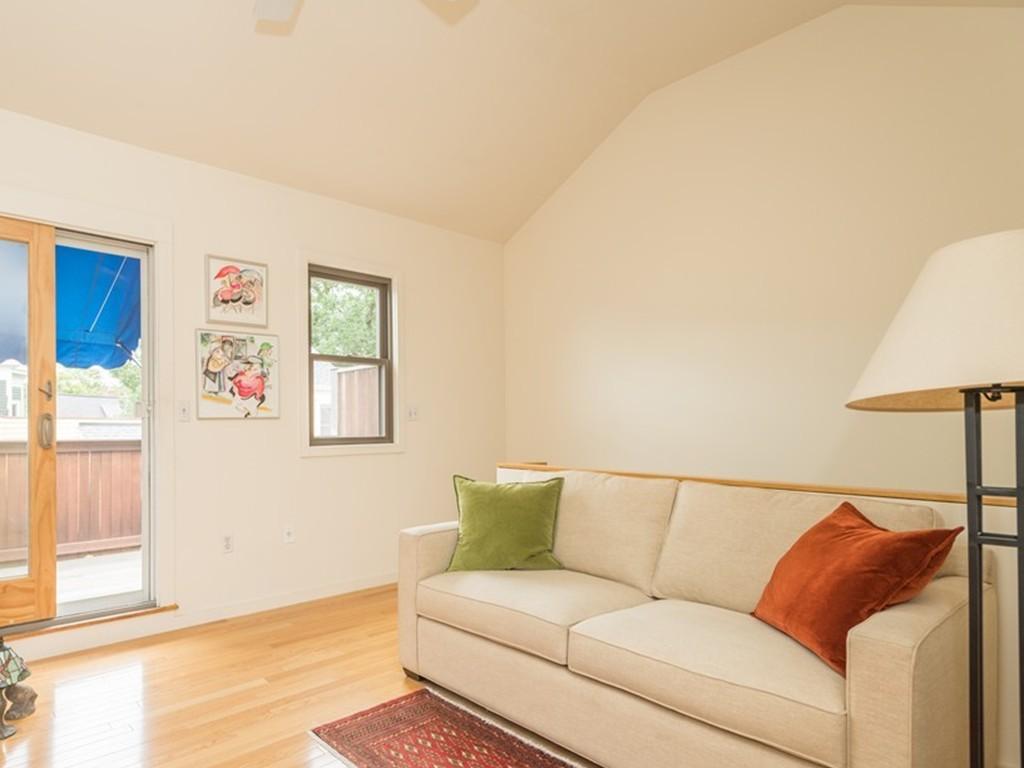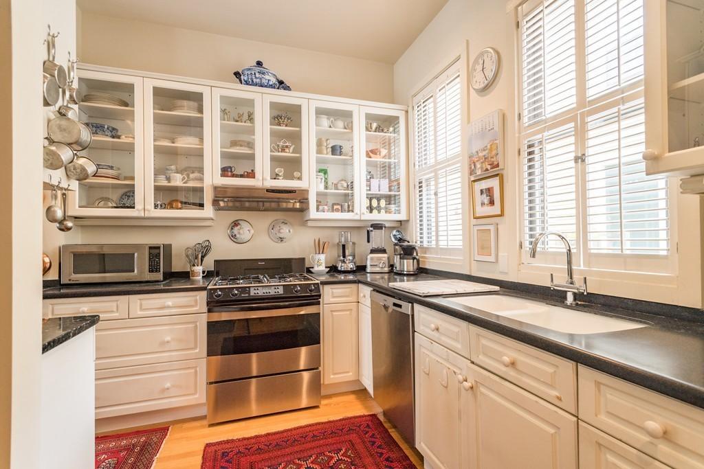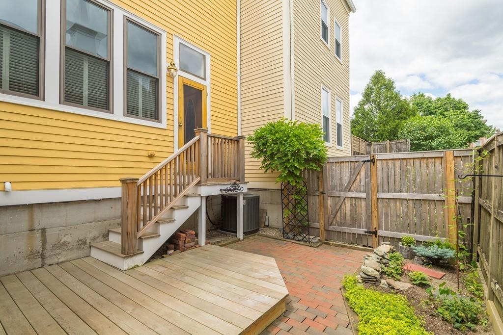 Dynamite Mid-Cambridge location between Harvard and Kendall Squares and easy access to the T at Inman Street/Mass. Ave. Pretty yellow single-family townhouse on 3 levels with 2 garage parking spaces attached. Semi-open floor plan with abundant windows, plantation shutters and private fenced garden and patio. The black and white kitchen has glass-front cabinetry, a Thermador range with gas cooking and electric baking; Sub-Zero refrigerator, Bosch dishwasher and vented hood. The second level has 2 generously-sized bedrooms, a roomy bathroom, washer and dryer, good closets. The third floor, presently used as an artist’s studio, works well as a bedroom, cheery and light-filled with a deck and a view of the John Hancock tower. This house has been very well maintained and cared for diligently. Near the restaurants of Inman, Union, Central and Harvard Squares. It’s a fab location! Walk score 94.