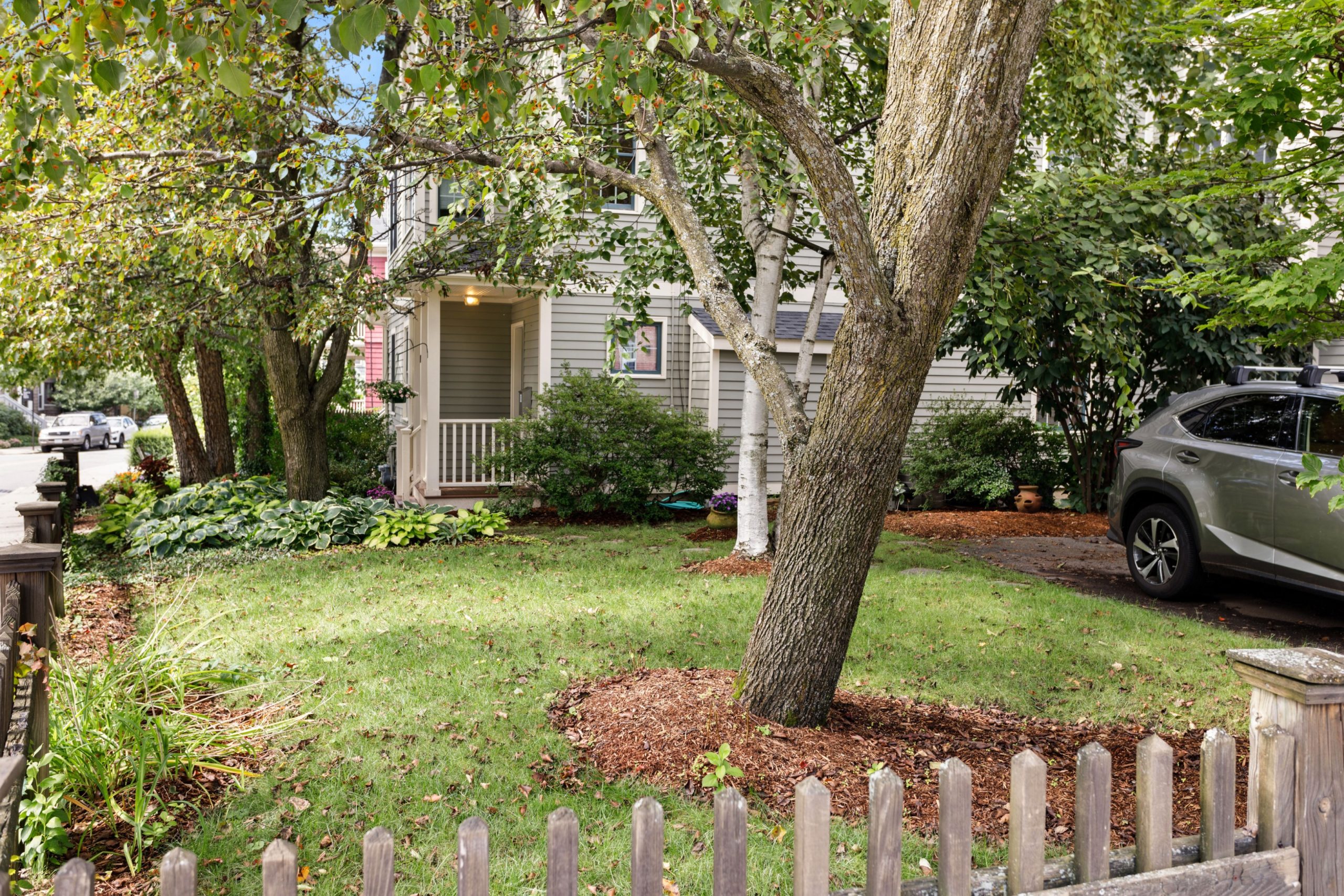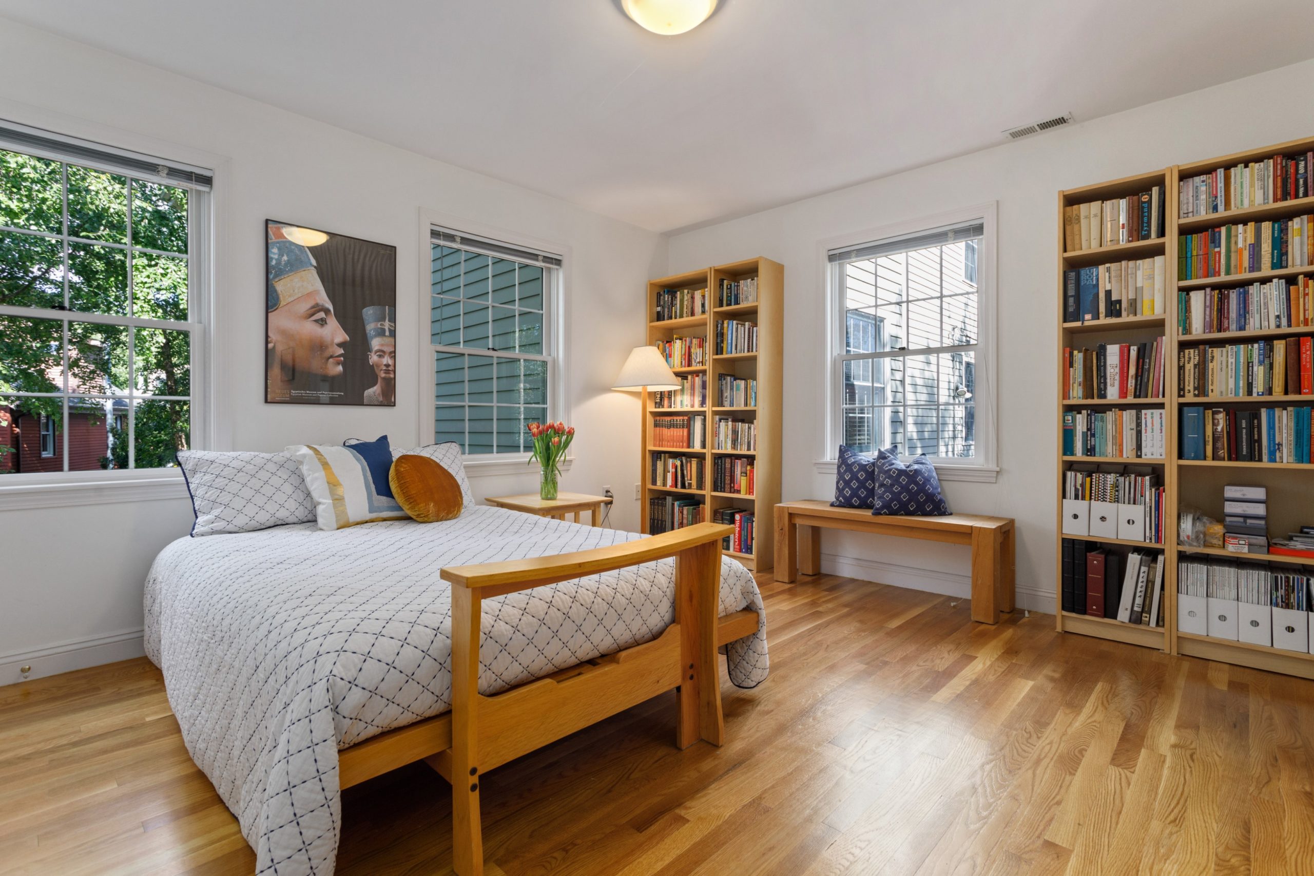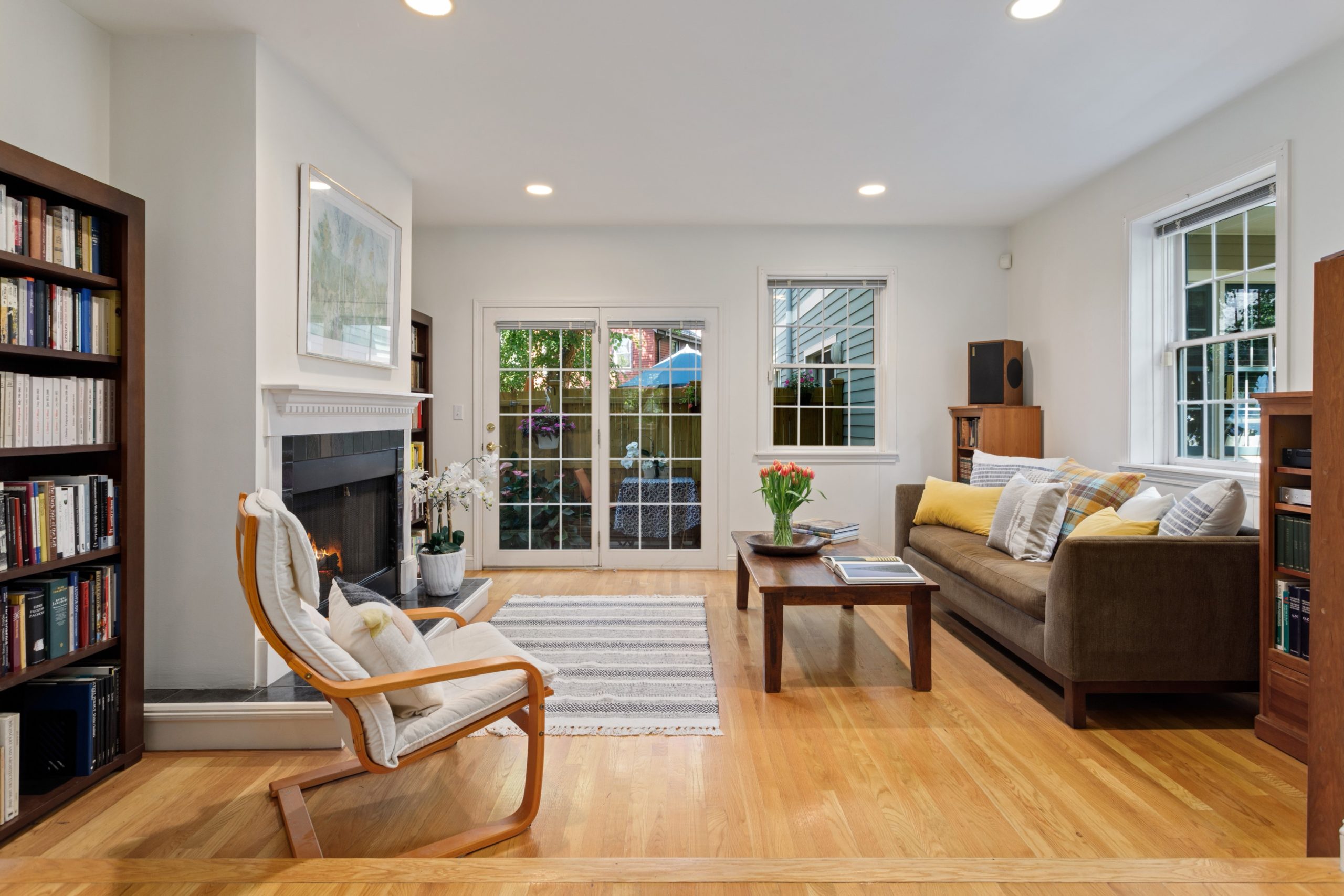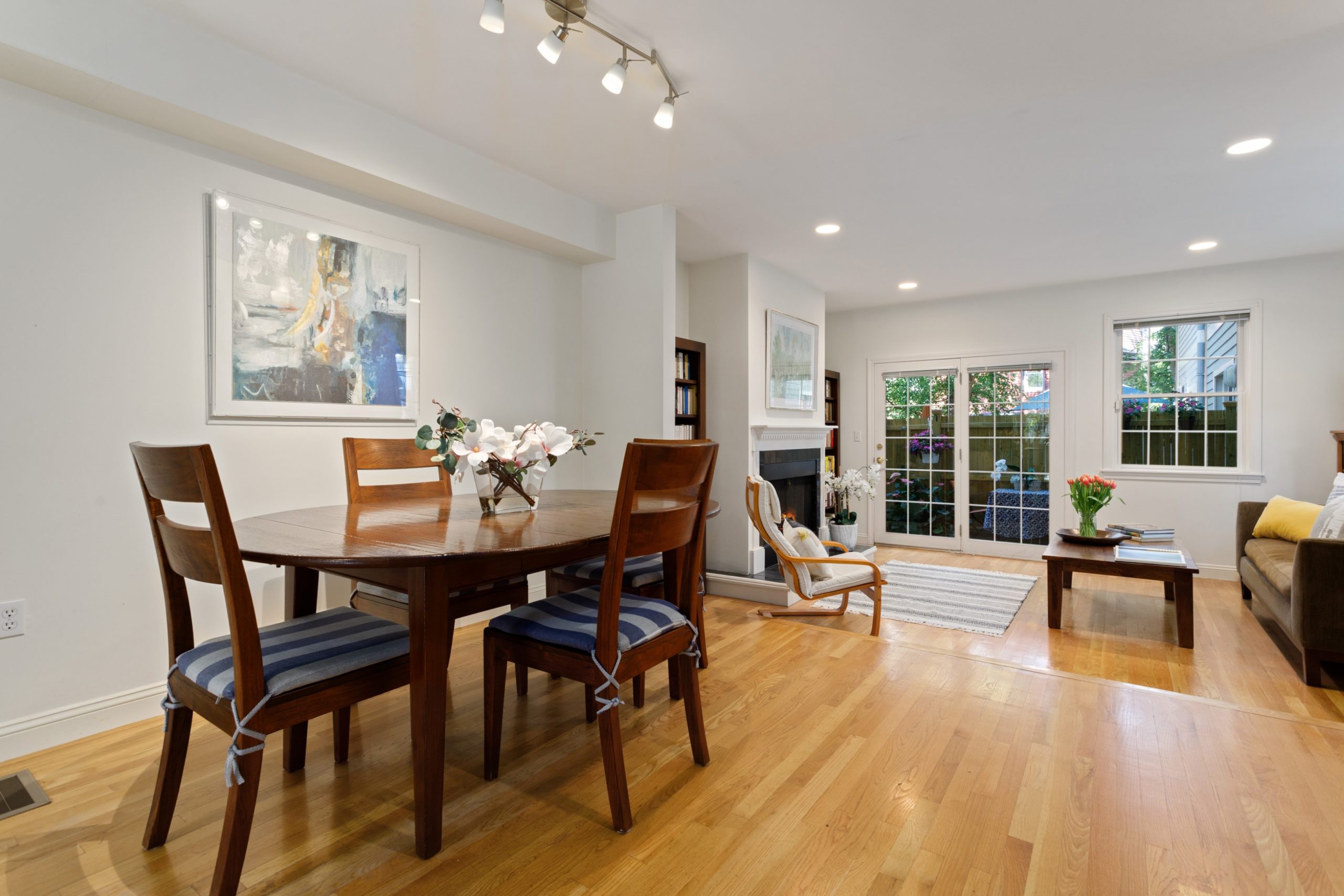 Privacy abounds in this delightful townhouse that oozes tranquility as you enter the front door. It’s light and bright with leafy window views and the generously sized rooms give a good feeling of space. A wood-burning fireplace and views of the flower-laden private deck grace the living room; the design of the dining room permits expansive seating; and the efficient SS kitchen has lots of natural light from its big end window. One bedroom on the 2d level is being used as an office; the other bedroom is large enough to use as a primary bedroom instead of going to the 3d floor suite. Utilize the space overlooking the balcony on the 3d floor as an open office or comfy library. The primary bedroom has a large bathroom with separate shower and a jacuzzi to enjoy at the end of a busy day. Great storage; parking; front/side yard. Well located for Porter/Harvard Squares and T’s, Huron Village, parks, schools, Boudreau Library, plus the little shops and restaurants that dot the neighborhood.