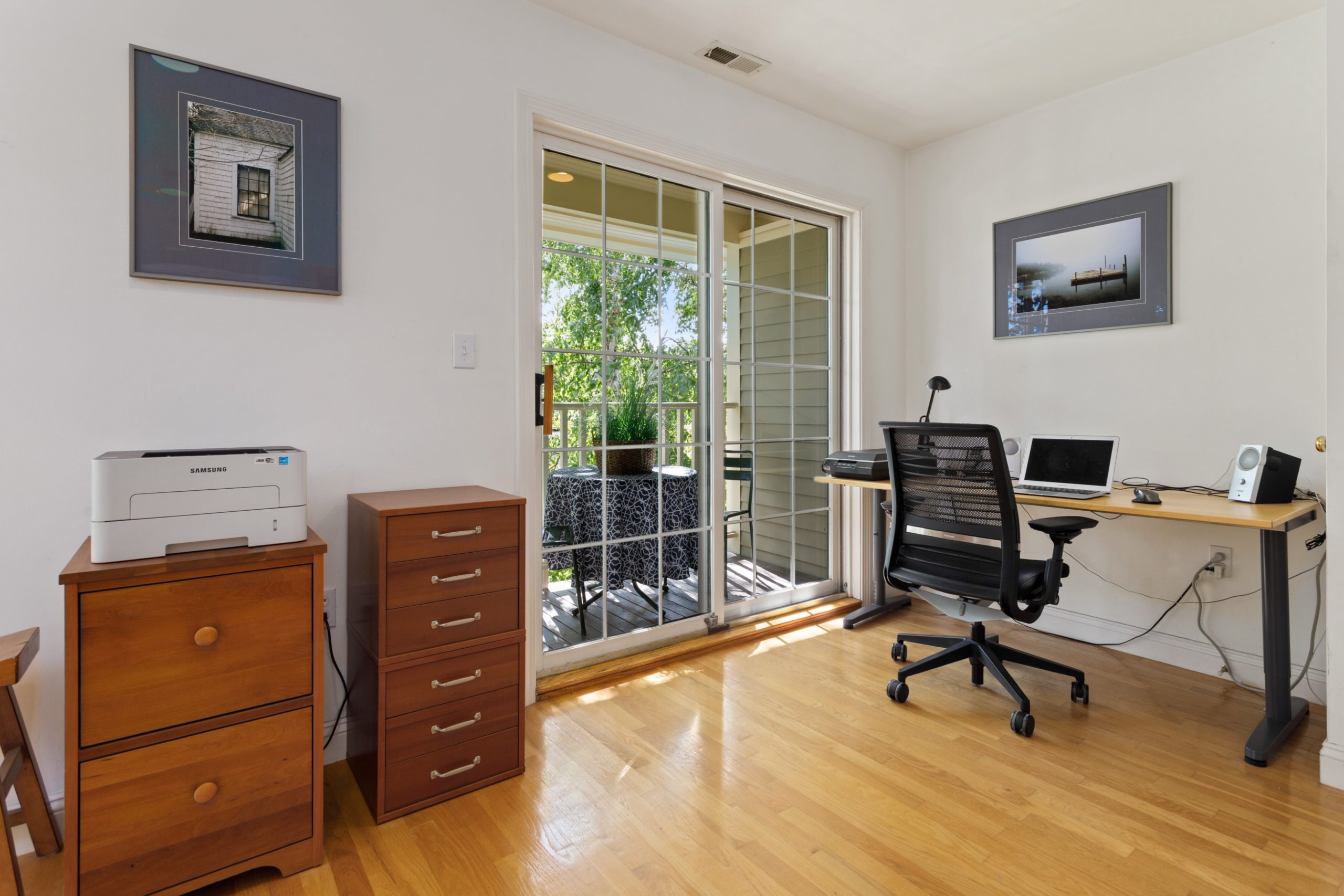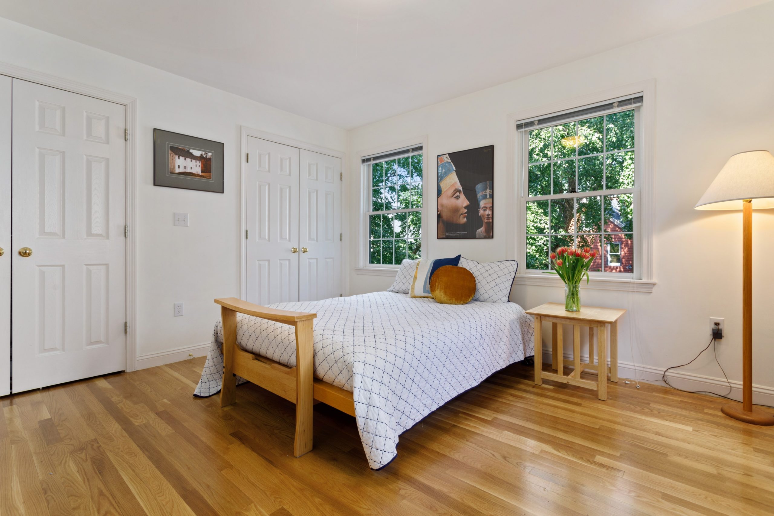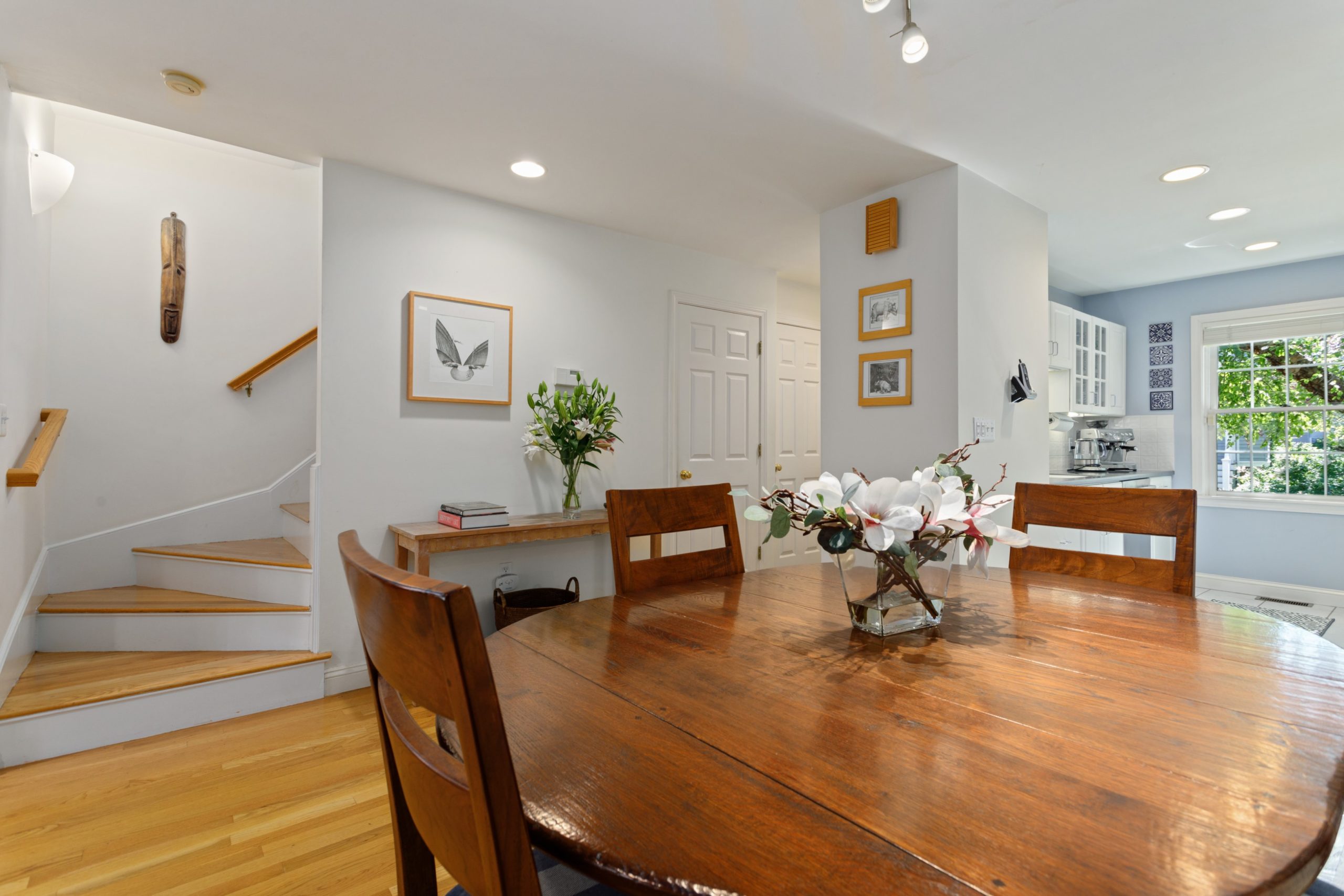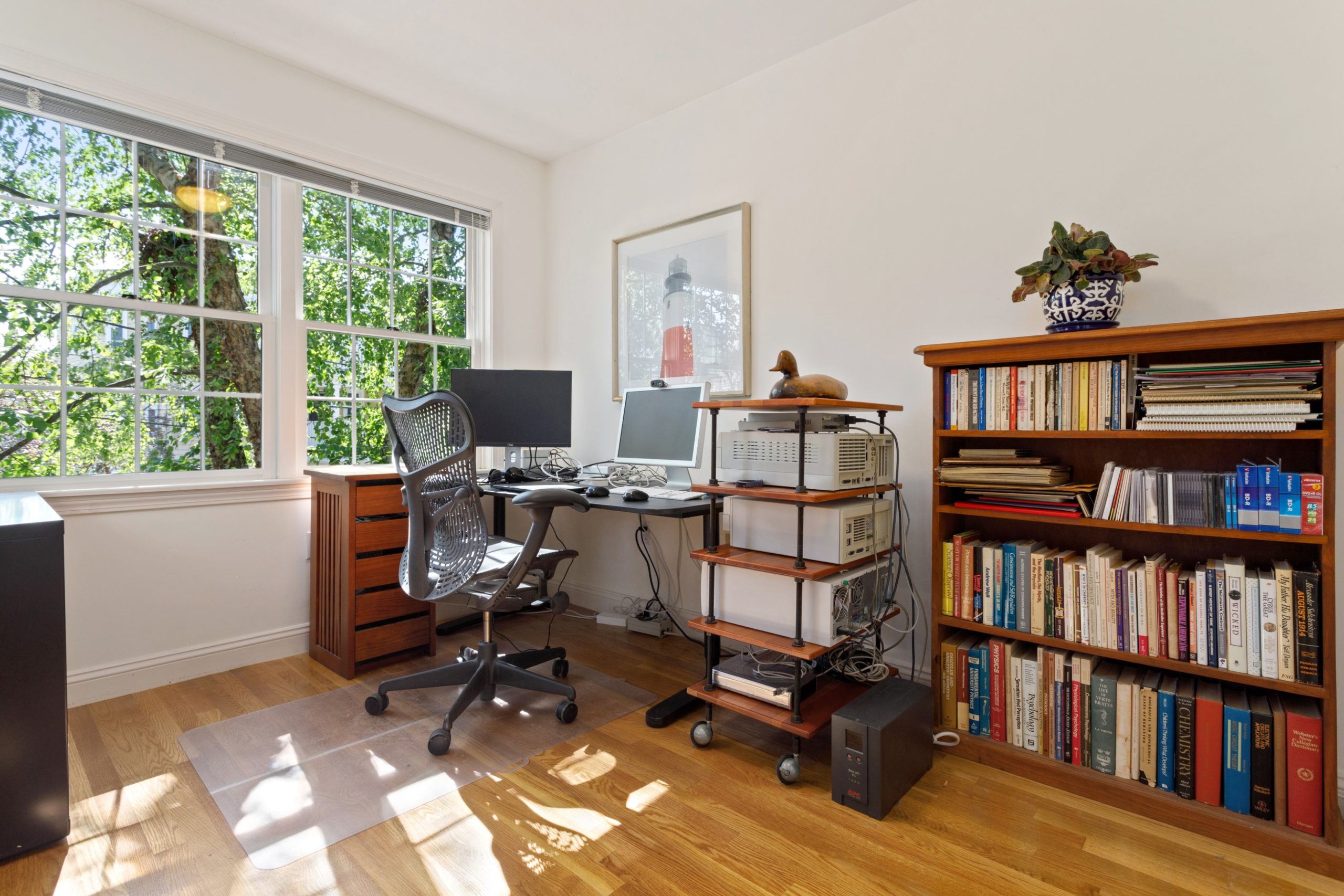 Privacy abounds in this delightful townhouse that oozes tranquility as you enter the front door. It’s light and bright with leafy window views and the generously sized rooms give a good feeling of space. A wood-burning fireplace and views of the flower-laden private deck grace the living room; the design of the dining room permits expansive seating; and the efficient SS kitchen has lots of natural light from its big end window. One bedroom on the 2d level is being used as an office; the other bedroom is large enough to use as a primary bedroom instead of going to the 3d floor suite. Utilize the space overlooking the balcony on the 3d floor as an open office or comfy library. The primary bedroom has a large bathroom with separate shower and a jacuzzi to enjoy at the end of a busy day. Great storage; parking; front/side yard. Well located for Porter/Harvard Squares and T’s, Huron Village, parks, schools, Boudreau Library, plus the little shops and restaurants that dot the neighborhood.