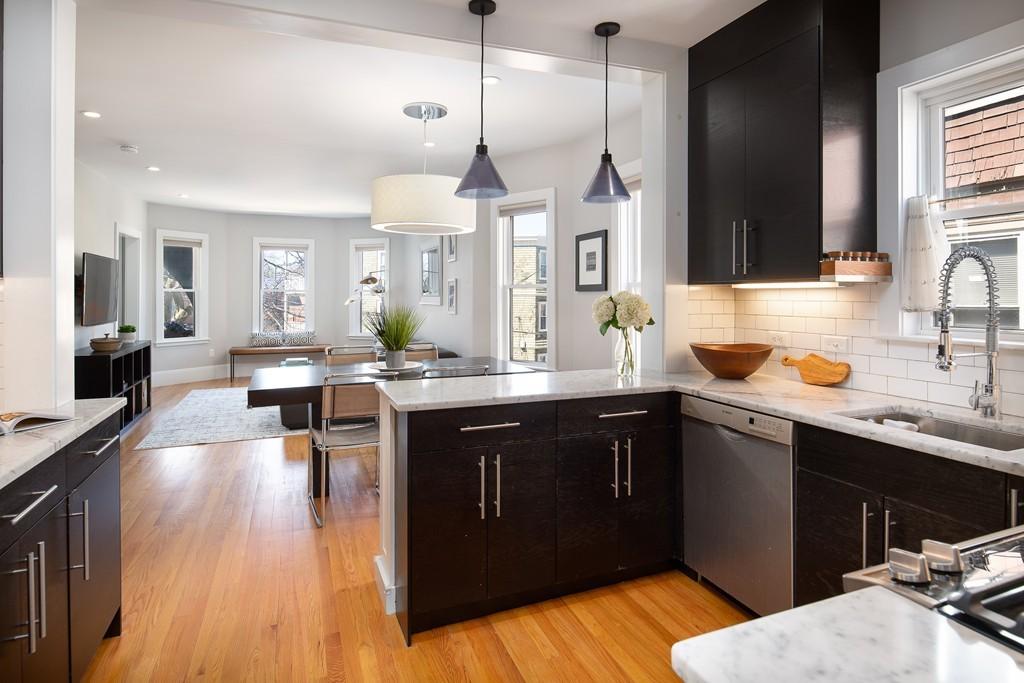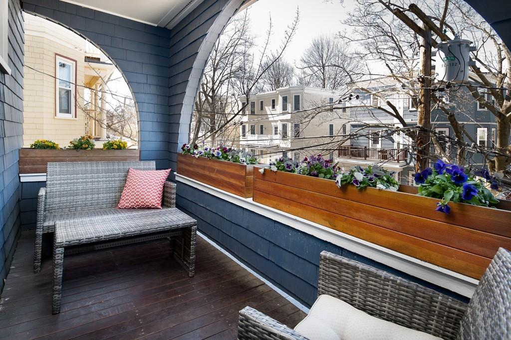 You will love living on Cambridge Terrace, a leafy side street near Porter Square, the amenities of Mass. Ave., and an easy jaunt to Davis Square. This 3-unit building was beautifully renovated by a quality developer in 2011. The interior is light-flooded from abundant windows and its open floor plan is perfect for entertaining or for private times at home. The kitchen is stunning and finished in very good taste, with handsome counters and cabinetry, SS appliances, vented hood and a window for natural light. The master bedroom has good closets and a lovely en suite bath with Carrara marble double vanity, bathtub and separate shower stall; a second bedroom is generously sized, too, with a large closet with built-ins; the third bedroom/office has bookshelves. Additional features include in-unit washer and dryer; extra storage; a private porch; and a shared patio with the owners of the third floor. Raymond Park is nearby, a neighborly place to make new friends. T/commuter rail nearby.