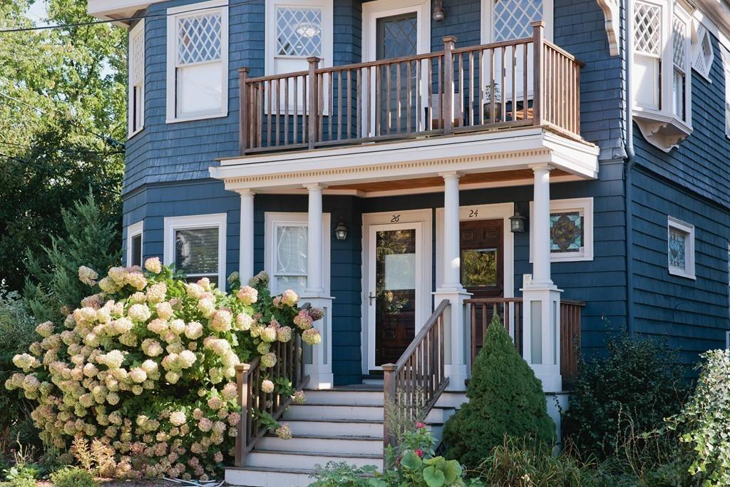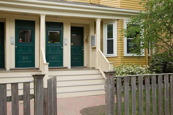 Cambridge Terrace is a highly desirable tree-lined street on the edge of Avon Hill, near the T, Porter and Davis Squares, Raymond Park with outdoor movies in the summer, and the amenities of Mass. Ave. and Huron Village. Light and bright and exceedingly well-designed, this home is surprisingly spacious for personal or party use. The open kitchen, dining room with built-ins and granite-topped buffet, and the 25’5″ long living room with its bay window make the home party-perfect. You will enjoy cooking in the well-planned kitchen, with its gas stove, recently replaced stainless steel appliances, and direct access to your own private porch and private patio. There are 2 full bathrooms for 2 bedrooms, and the en-suite bathroom is lovely, with tumbled marble stonework and custom cabinetry. A clean, well-lit private room in the basement provides an abundance of storage space and the washer and dryer. With central air conditioning and a private driveway for 2 cars, yes, you can have it all.