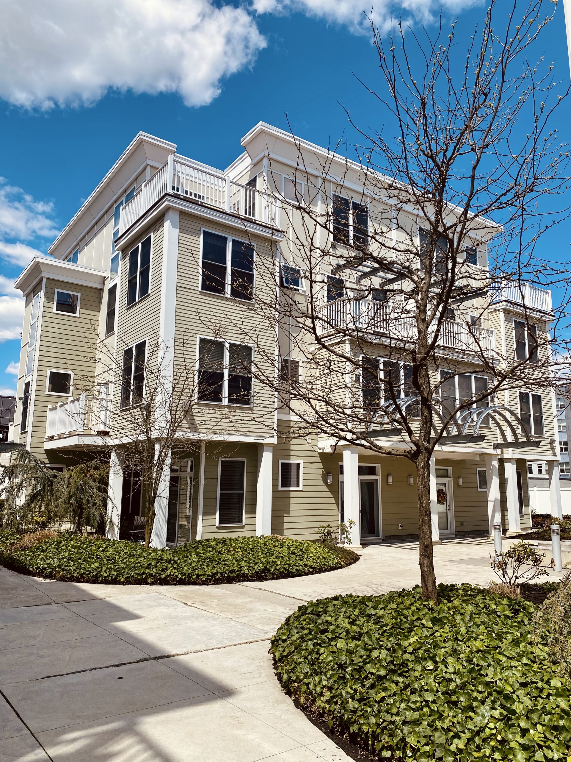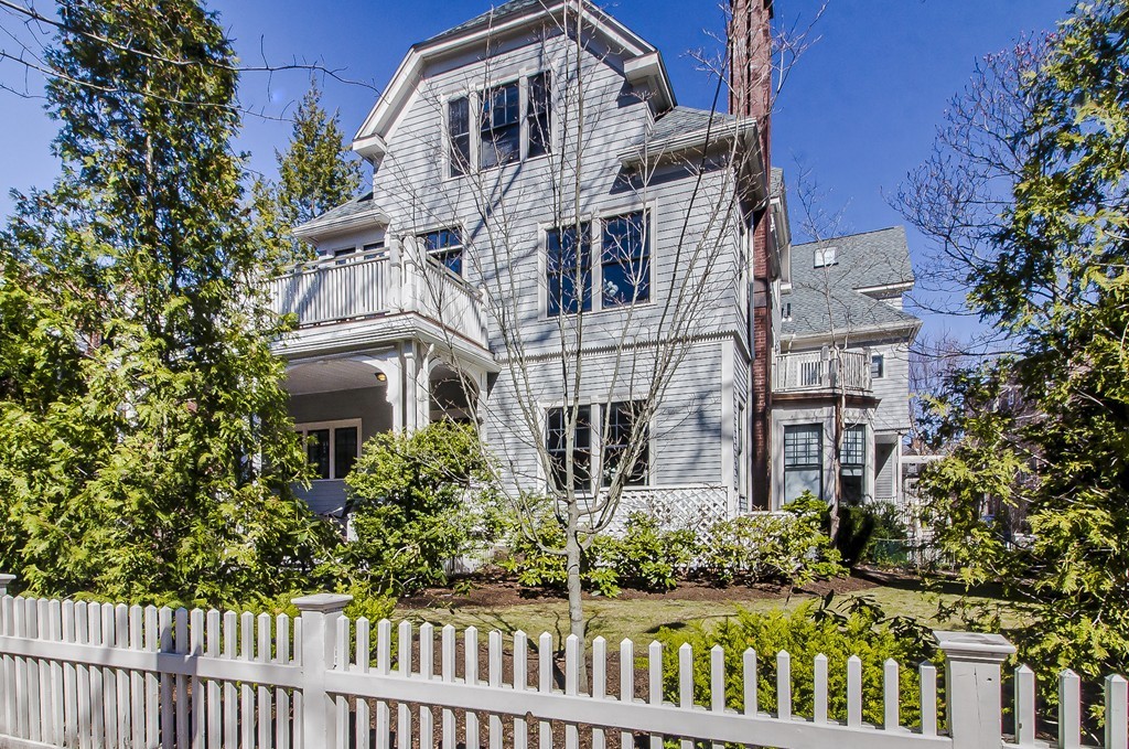 Harvard Square. This dramatic, light-flooded, exceptional home has windows on 3 sides with views of the private surrounding grounds. The front gate and walkway to the welcoming private porch is the entry for this home only. First floor is open concept, highlighting the living room with FP and custom shelving; the sleek kitchen equipped with SS appliances, gas cooktop, vented hood, TV and bar; and French doors in the dining room to the private deck, patio and left side yard. The 2d floor open lounge/office is enchanting, surrounded by windows with doors to the L-shaped deck; one large bedroom with an FP was used as an office and could be a mr. bedroom; the 2d bedroom has access to the deck as well. The 2d floor bath has a walk-in shower. The mr. suite on the 3d floor has built-ins, gas FP; walk-in closet with closet system; 3 skylights; oversized 4-piece bathroom with soaking tub, TV, and w&d closet. 2 side-by-side parking in underground garage; 2 storage rooms. Near T and everything!