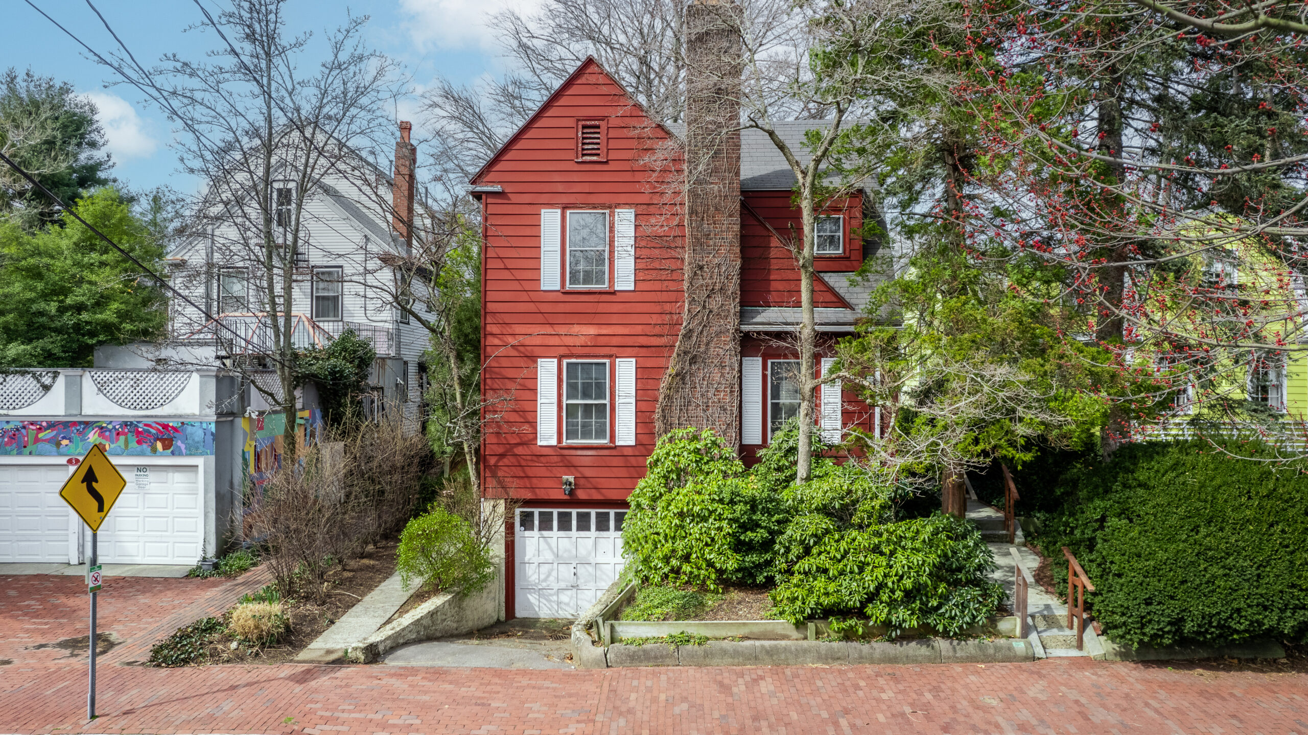 A rare offering in the historic Half Crown-Marsh District, the coveted neighborhood south of Brattle Street/Tory Row. Flooded with natural light and only 1.5 blocks from the Charles River, you will feel nicely ensconced in this elevated house with the natural privacy the surroundings provide — there is no parking on the house side of the street. A beautifully proportioned living room with fireplace and built-ins graces the front of the house. Eat-in-kitchen could be opened to the dining room. A heated, knotty pine sunroom overlooks the expansive yard with a patio and magnificent sprawling copper beech tree and other greenery. An office, half bath complete the 1st floor. The 2nd floor has 3 bedrooms (a wall was removed to make a large primary bedroom) and 2 full baths. One underground garage with driveway parking. Superbly located near parks, Shady Hill,