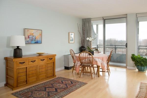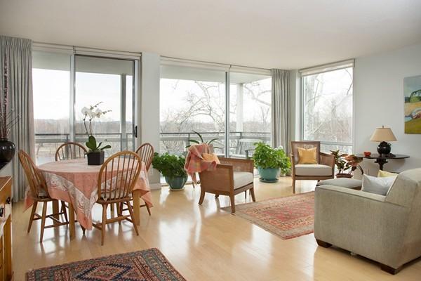 Harvard Square! Sought-after, west corner residence with sweeping, 4-season views of the Charles River from a wall of floor-to-ceiling windows. Enjoy watching Harvard and BU sculls, pleasure boating, tranquil river views and the fun of entertaining your friends from your ringside balcony for the Head of the Charles regatta. This beautifully and thoughtfully renovated home has an open floor plan, creating a light-flooded interior and luscious views. The 2-bedroom, 2-bath residence has abundant closets; a master bedroom with en-suite bath, custom cabinetry for extra storage, and double closet with systems. The second bedroom has a walk-in closet and bathroom nearby with custom cabinetry for extra storage. Additional features include maple flooring (original parquet replaced); replacement windows; a large honed granite peninsula with breakfast bar in the open kitchen; and in-unit laundry. Extra storage; parking. Expansive common yard. Full service; 24-hr concierge. T; bus.