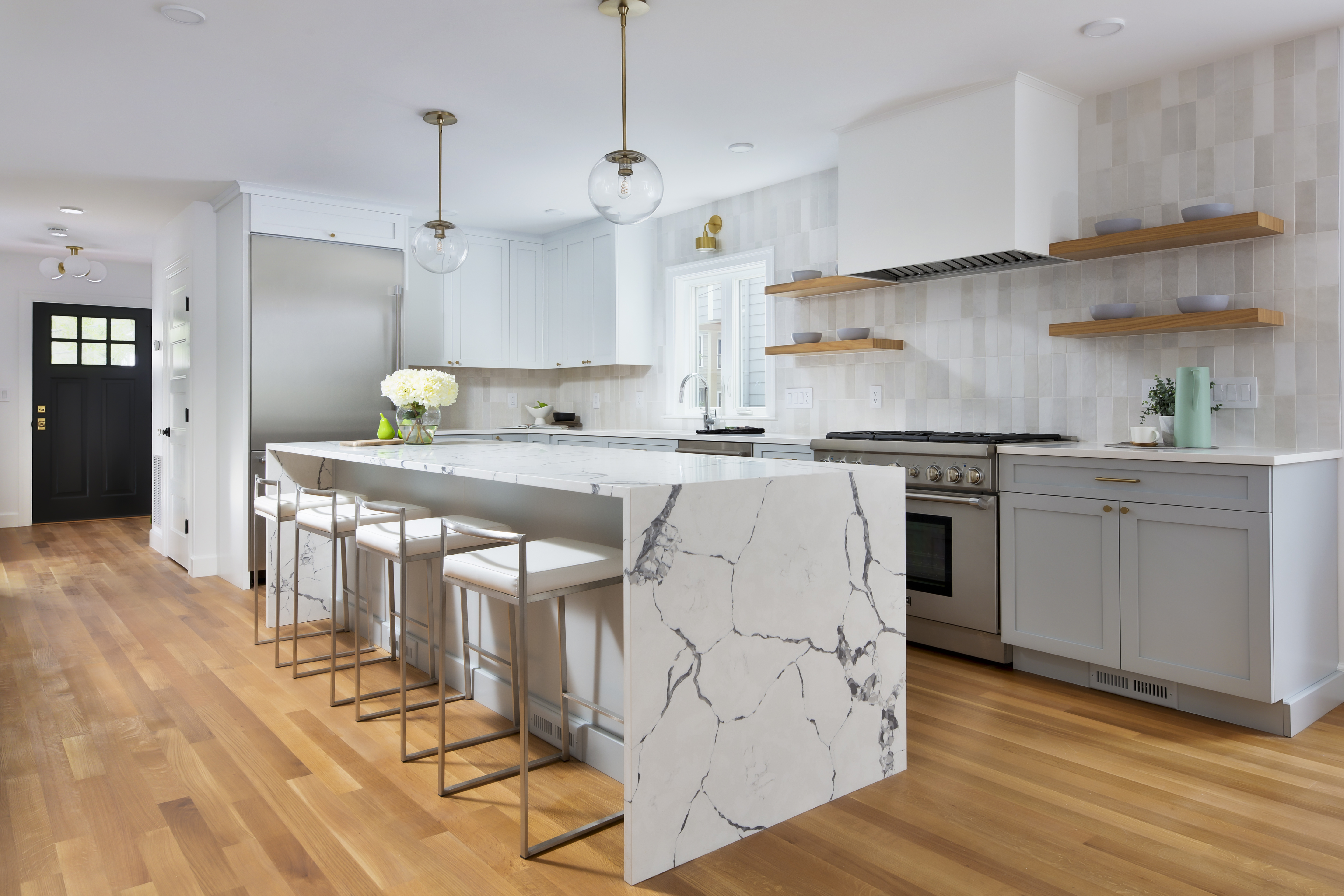 A work of art! Rarely will you see a renovation (gut) as thoughtfully and meticulously executed as this duplex condominium home, exuding quality and good taste throughout. A grand 9′ long quartz island with waterfalls is central to the kitchen, efficiently flanked by a Thermidor SS refrigerator, 6-burner gas range with hood, microwave drawer and dishwasher. Custom cabinetry is white and gray, accented by open floating shelves, quartz counters and imported backsplash tiles. The expansive L-shaped open plan will delight your stay-at-home hours and wow your guests when you entertain. The bedrooms are generously sized; one is perfect for a convenient office. The mr. suite has a walk-in closet and lovely bath with double vanity. 3 full bathrooms have marble flooring, white quartz counters, and lighting under the vanities; 2 of the bathrooms have radiant heat. Sliders from the living room open to your private deck, patio areas and side yards. Deeded parking. Located in charming Huron Village.