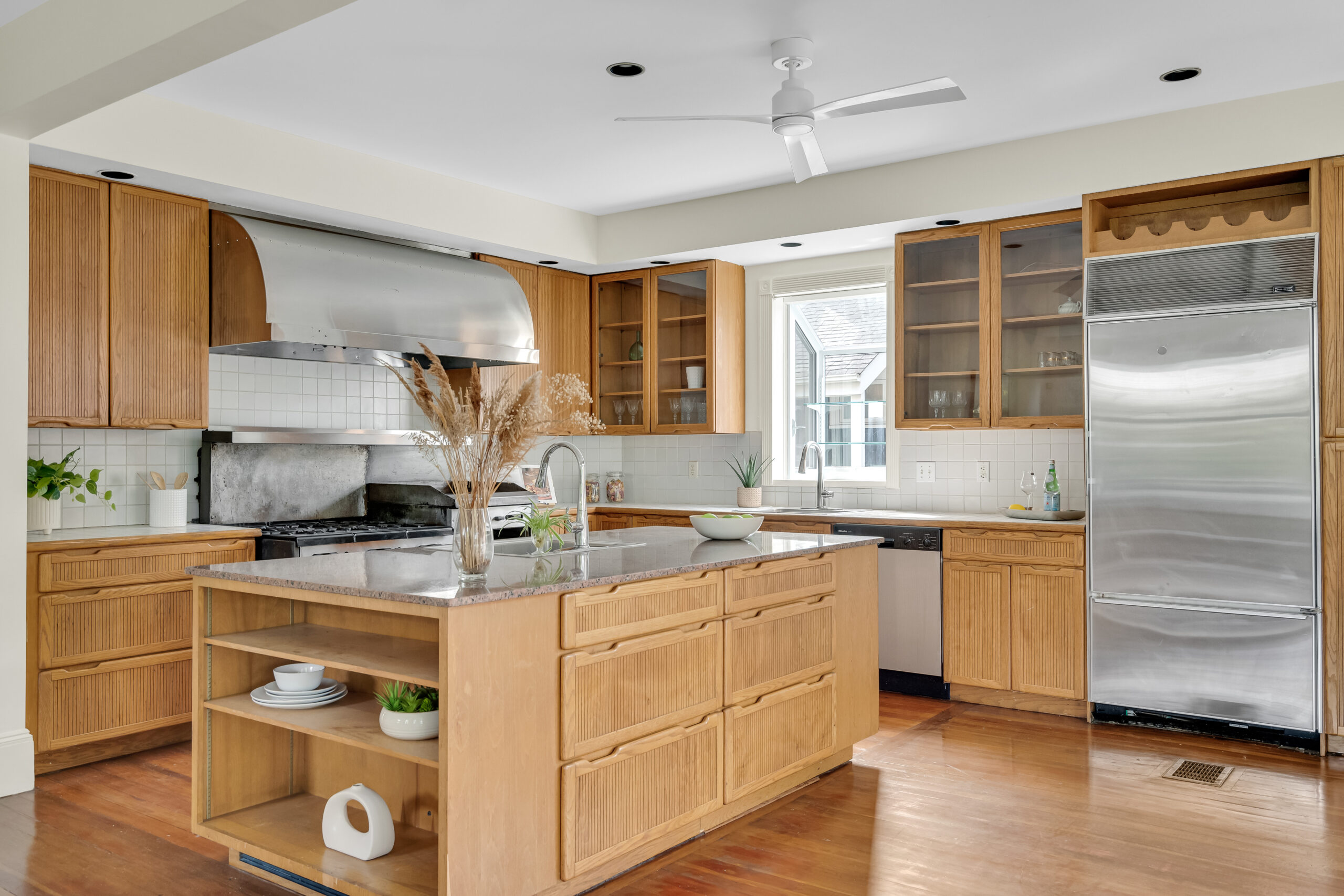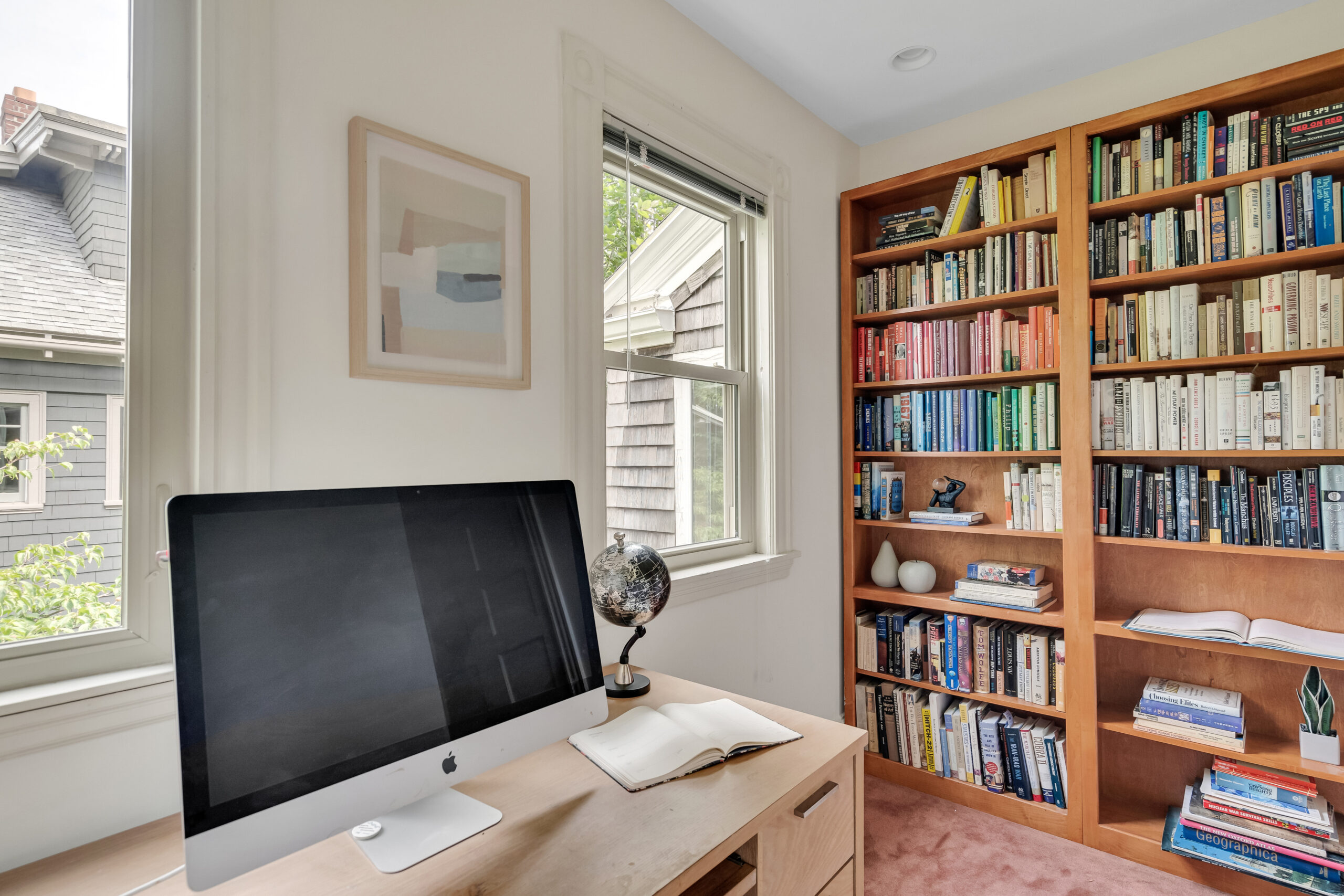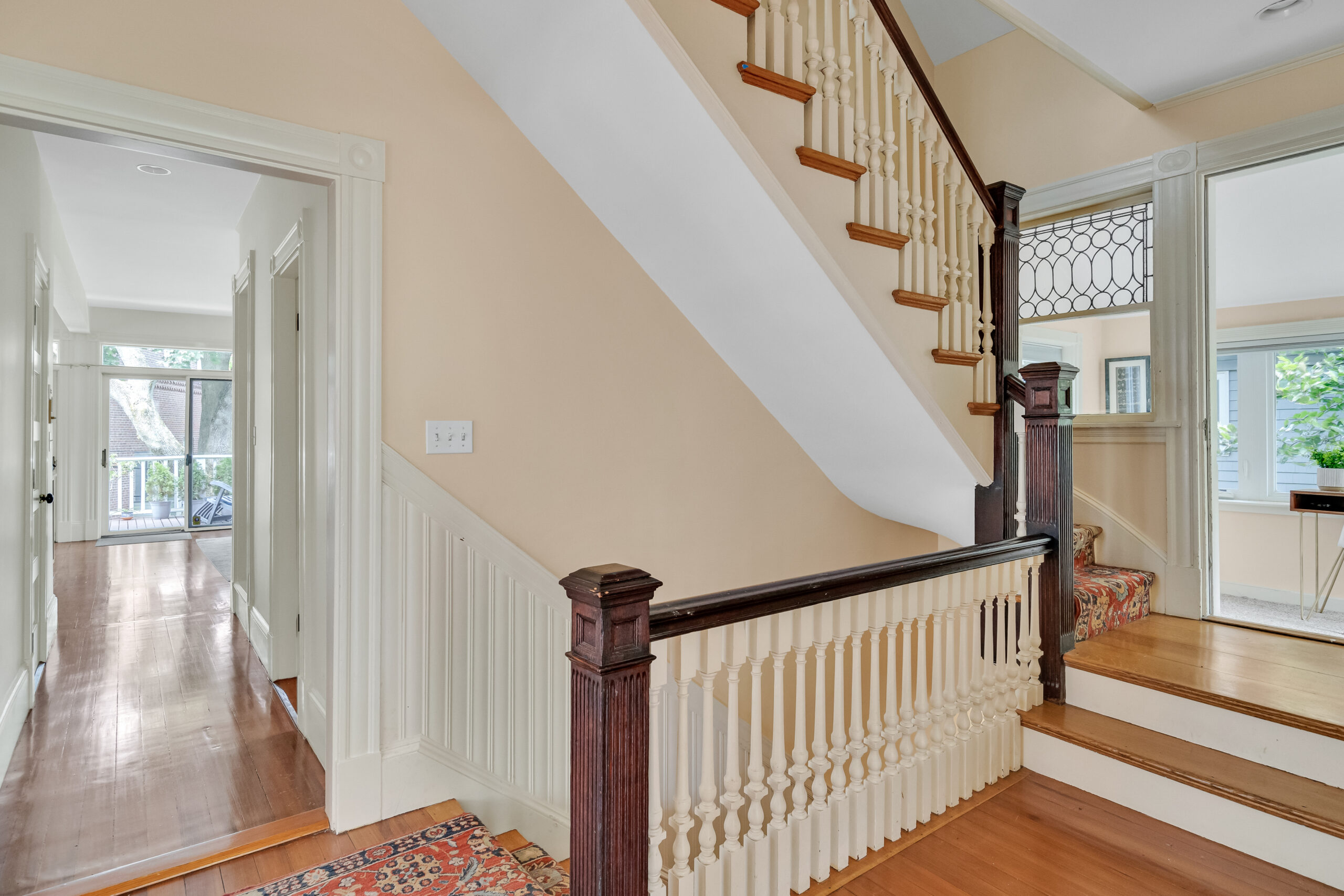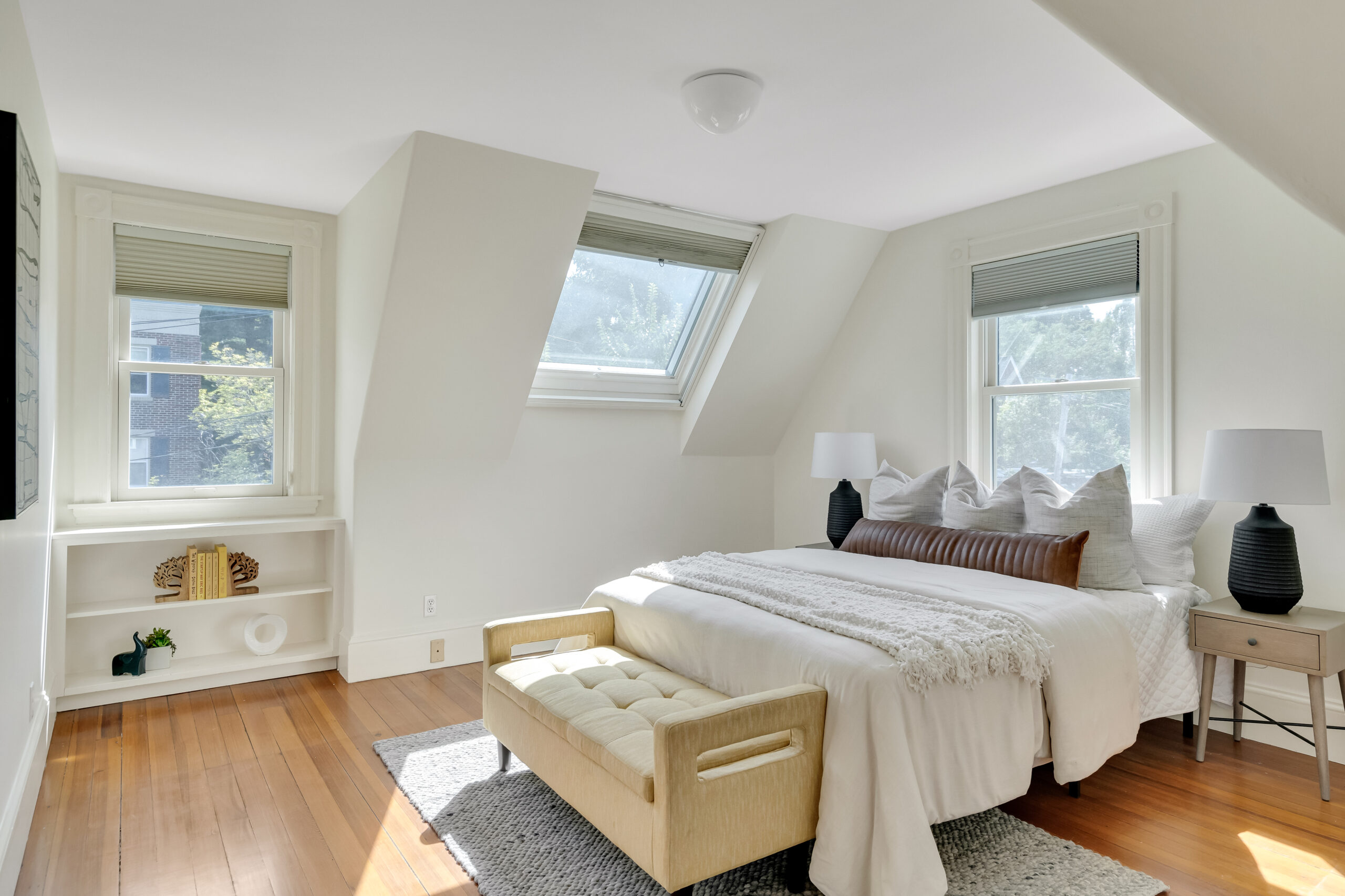 A rare beauty! The luscious light-flooded interior with oversized rooms and several flex rooms provides multiple options for your use. The large, comfortably elegant living room has a fireplace and off the living room is a flex room with a private balcony. The kitchen is for gathering with family and friends; has abundant wood cabinetry, a big, well-used Garland range with double oven, a Sub-Zero refrigerator, 2 sinks and an island. A wall of windows and sliders opens to the deck with its private views. Two offices, a laundry closet and half bath complete this floor. The primary bedroom is awesome, with its vaulted ceilings, size, skylights and window seat, plus a walk-in closet and lovely marble bathroom. 2 additional bedrooms share the 2nd full bath. Stairs from the deck lead to the wondrously-sized private fenced yard; there is plentiful basement storage; and 2 tandem parking. Terrifically located near the Porter Square T, commuter rail, Raymond Park and so many restaurants and shops.