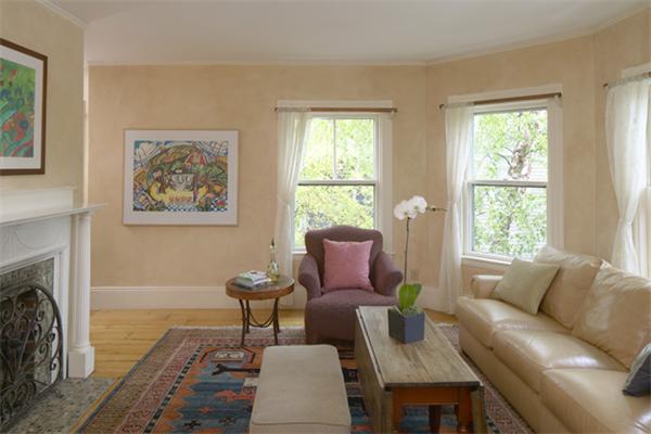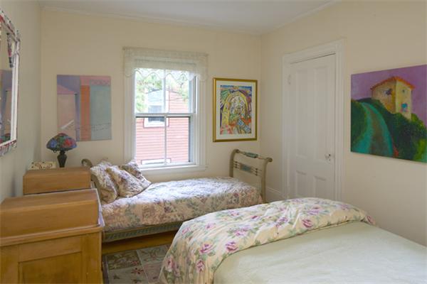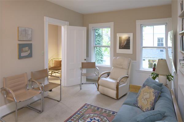 Dynamite location near Harvard Square and the Charles River, yet tranquilly sited far back from the street for serene living. The private entry leads to an exceptionally large, exceptionally charming second floor with all of the rooms on one level—a rarity. The abundant windows on four sides provide great light and pretty views with good window privacy. The generously sized living room has a bay window, wood-burning fireplace, custom cabinetry and shelving. The dining room, also with a fireplace, bay window and wall of bookshelves, is open to the kitchen for a contemporary lifestyle. Two of the 4 bedrooms are used as offices now, and the professional office, with its private entry and half bath, would serve well as a bedroom suite. Additional features include 2.5 baths; in-unit washer dryer; a private porch; high ceilings; wide pine and fir flooring; good closets; a private storage room in a nice basement. The chimney has been rebuilt, the flues lined, and an easy damper control was installed. One parking space, not tandem, plus one guest space for the building and use of the common garden and patios. Near the T, everything!