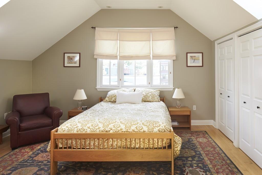 Riverside–a dynamite location! This architect-designed beauty has an abundance of comfort and conveniences, coupled with elegance for gracious entertaining. Its spacious, light-filled rooms feature uncommon creativity, as well as the traditional preferences for high ceilings, maple flooring, and window bays. You will enjoy cooking and dining in the well-planned country kitchen, with its Sub-Zero refrigerator, Wolf gas stove with griddle, and vented hood. Two bedrooms on the second floor are large enough for either to be used as a master bedroom, with good closet storage and a shared bathroom. The delightful third floor suite with cathedral ceilings has skylights in the study and master bedroom, a wall of closets, and a bathroom with double vanity. Fenced for privacy, the landscaped backyard with patio provides a soothing setting at the end of a day. Central AC and vacuum, a security system and 2 parking spaces complete this stylish home. Near the T, Harvard, the Charles River.