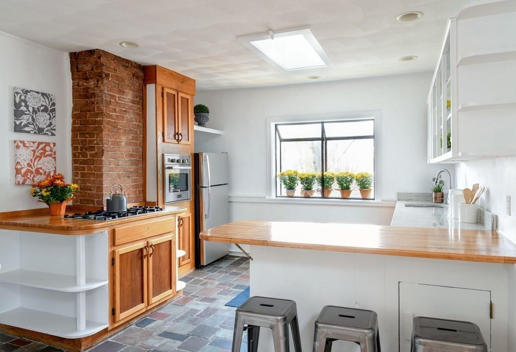 | Dynamite location with excellent proximity to Harvard; the Charles River for the Business School, MIT and BU; and Harvard Square and the T. A private entry with its own address leads to this light-filled top floor condominium with oversized window bays, skylights, high ceilings and generously sized rooms and bath. This residence has a semi-open floor plan with an unusually livable layout and large flex room with a pocket door, presently set up as a family room. The 2 bedrooms are separated and situated away from the living areas for added privacy; one bedroom has a cedar closet with closet system. An informal/formal dining room opens to the eat-in kitchen, with a breakfast bar, window box, and SS cook-top stove, wall oven, Bosch dishwasher and refrigerator, all newer, as is the in-unit washer and dryer. Access to the big private deck is off the kitchen, and the back stairs provide a quicker route to the basement storage and deeded exclusive driveway. Historic fort was located next door. |