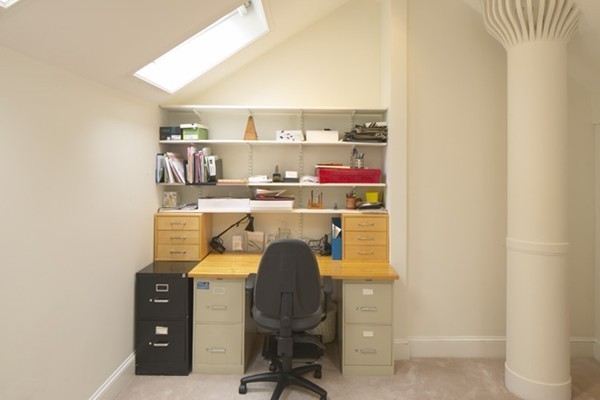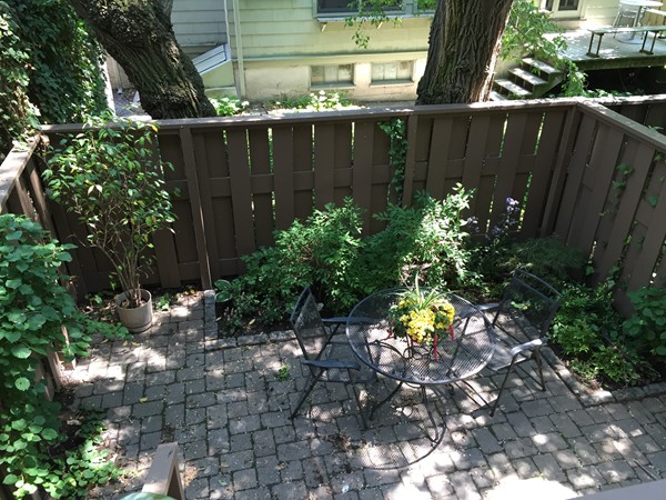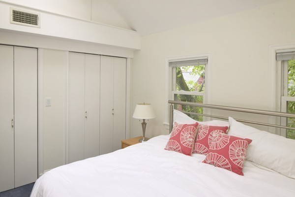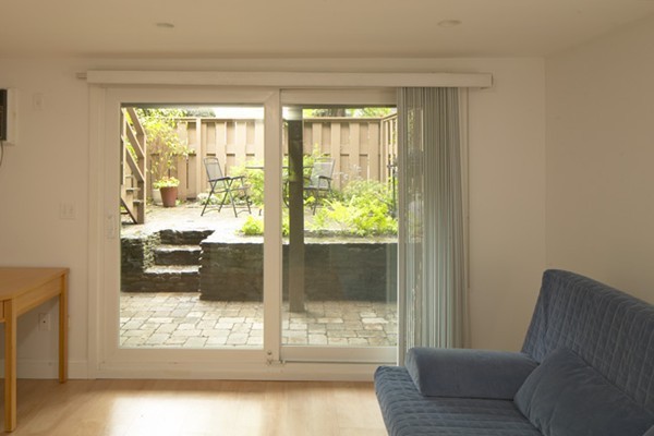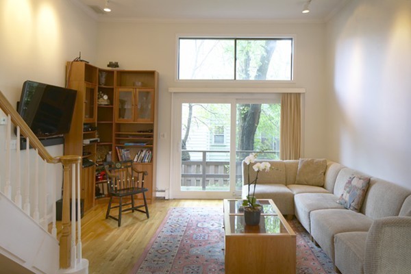 In atmospheric Professors Row, the setting for this contemporary townhouse is towards the end of the intimate mews, amidst lovely mature trees to provide greenery in its dynamite urban location. The living room has a wall of windows and a soaring ceiling; a designer wood stove; an “expandable” dining room; and a kitchen with granite counters, stainless-steel refrigerator with French doors and lower freezer, a Bosch dishwasher, as well as a gas stove with vented microwave above. The bedroom on the second floor is generously sized and could be used as the master bedroom, with its own full bath; the laundry room is conveniently located on this floor. The master bedroom suite above has a wall of closets with drawers and storage systems, a cathedral ceiling, two skylights and an en suite bath with a hot water dispenser to have a cup of tea or coffee in bed. The two offices above have skylights and closets; the upper office had been used as a bedroom by the previous owners. Two years ago the garden level room was renovated, with a full bath and kitchenette added, which provides terrific space for family use, guests or an au pair. Pella sliders in the living room, which lead to the deck and patio in the fenced yard and from the garden level to the patio and gardens, were recently replaced. The coat closet is near the heated 1-car attached garage, which has an overhead automatic door opener and room for storage. The house has central air conditioning; a 1-year-old Veissmann wall-mounted, gas-fired condensing boiler with hot water on demand; replacement tilt-in windows; 2005 roof; gutters cleaned June 3d of this year. The Harvard Square T is nearby; there are bus stops on Kirkland; Julia Child’s beloved Savenor’s is just up the street; there is an easy jaunt to every Square in Cambridge.